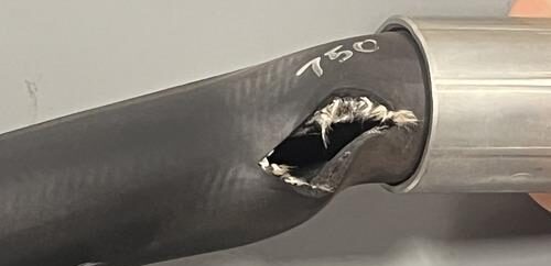 b.风险:阻碍液流,产生高温,并显著降低软管耐压强度。